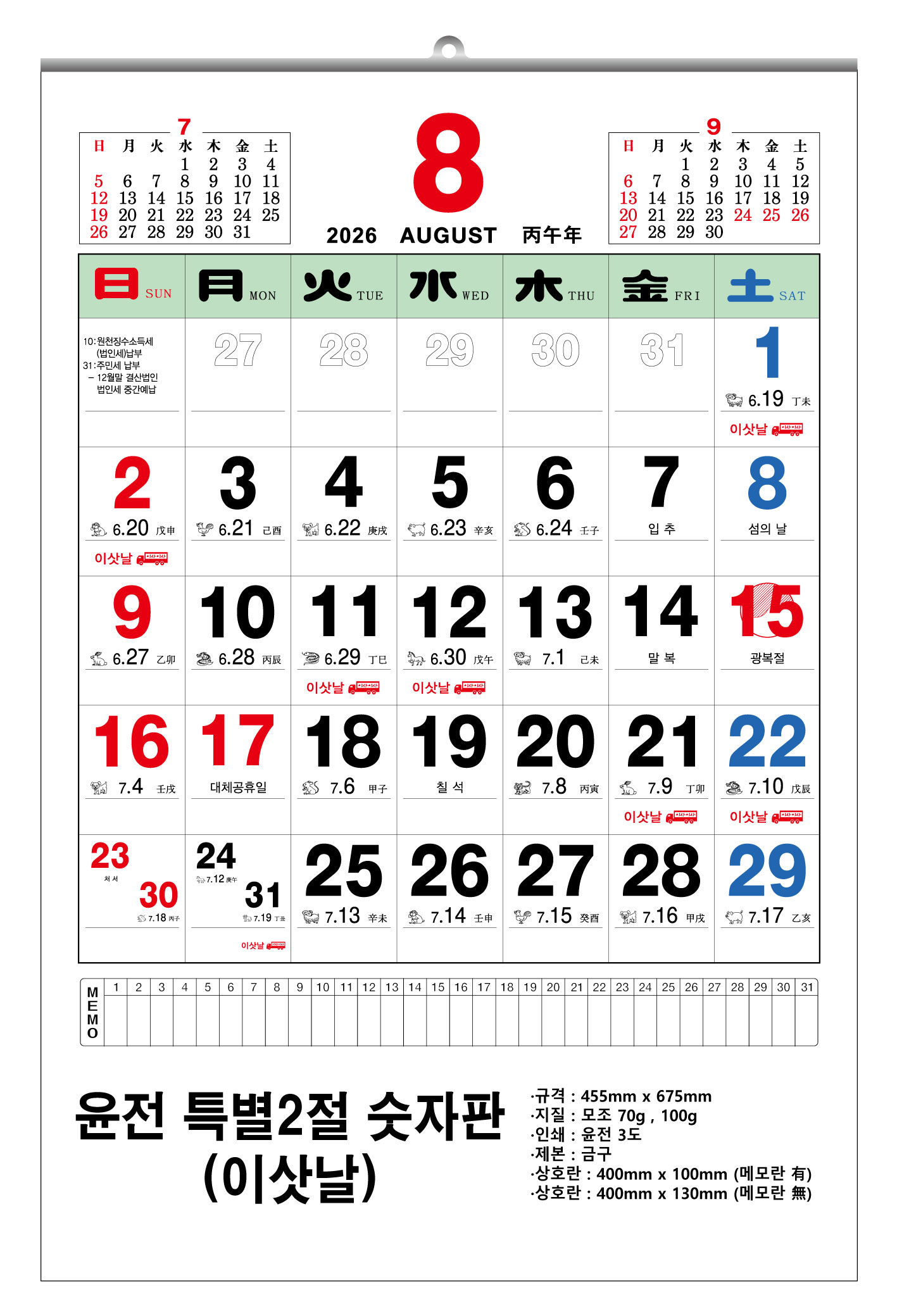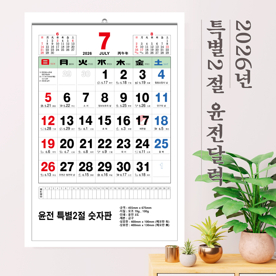 2026³â À±Àü Ưº°2Àý ¼ýÀÚÆÇ ´Þ·Â 455x675mm (70g/100g) 1P