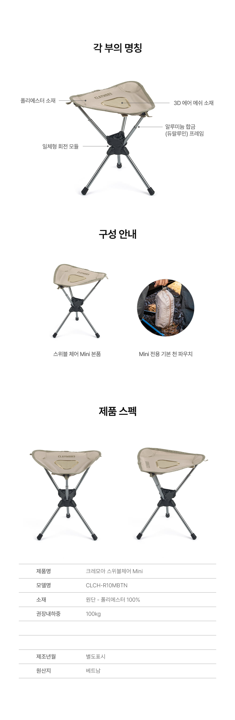 »óǰ¸í [Å©·¹¸ð¾Æ] ½ºÀ§ºí ü¾î Mini ÈÞ´ë¿ë Ä·ÇÎÀÇÀÚ CLCH-R10MBTN 1P